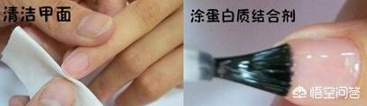 清洁甲面、.涂蛋白质结合剂:用专用清洁液清洁甲面。涂抹蛋白质结合剂时要均匀,避免太薄或太厚。然后照光疗灯1分钟(LED灯照30秒)蛋白质结合剂照灯时间不能低于1分钟,低于1分钟不能照干,且容易脱落。也不能超过一分钟,照灯时间过长,会把表面的浮胶照干,表面浮胶能增强与有色甲油胶的附着力。